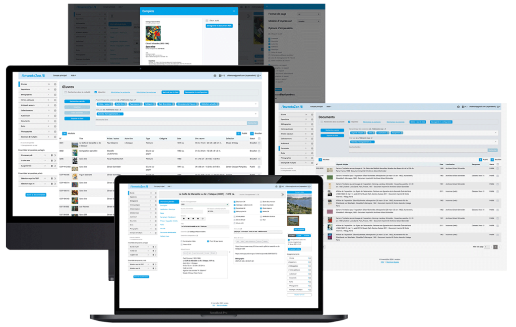 Ensemble des outils InventoZen pour la gestion autour des collections. Il inclut des fonctionnalités de partage, facilitant l'accès aux œuvres et renforçant les liens avec le public et les collectionneurs.